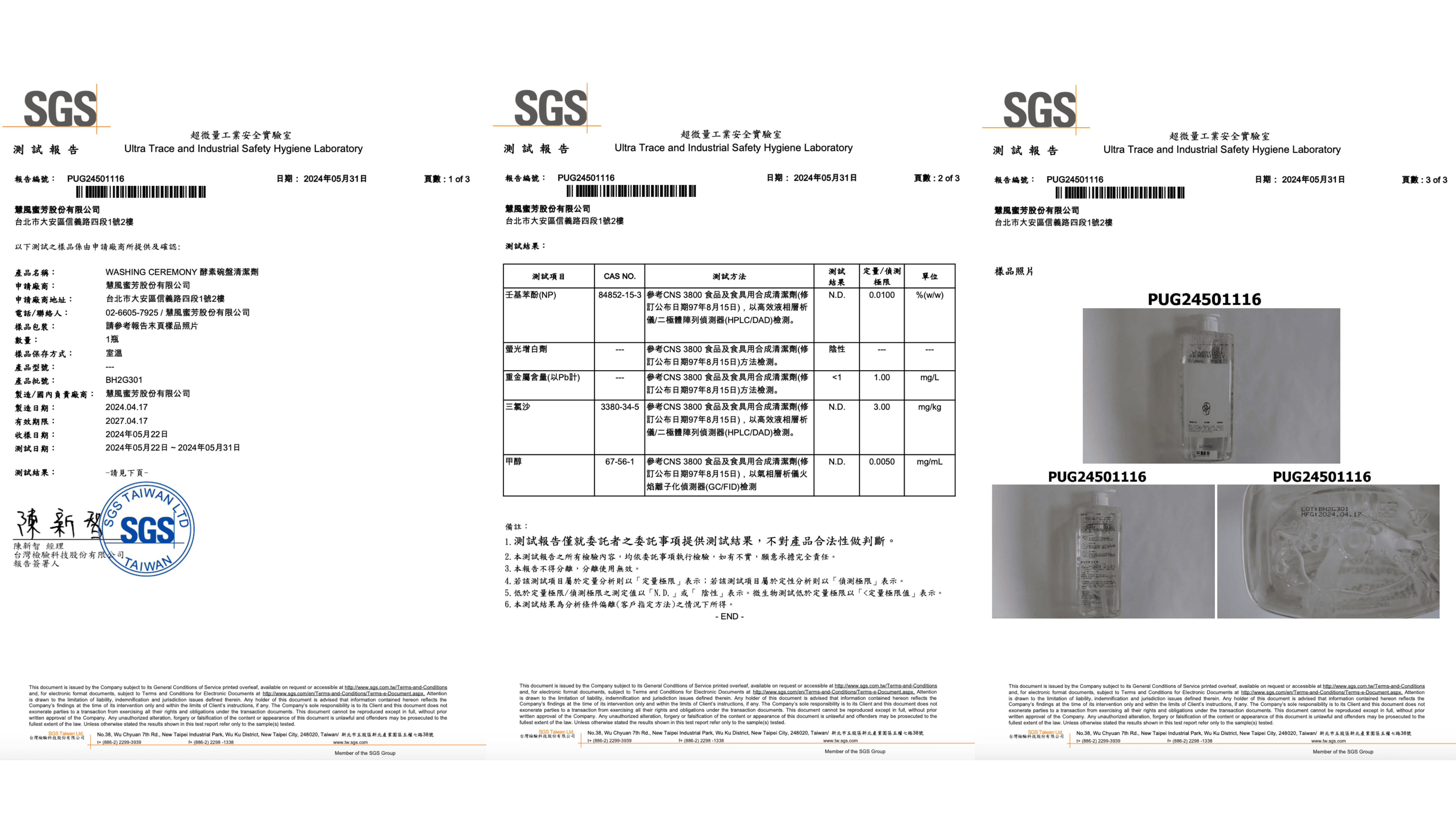 通過國際SGS高規格檢驗,零檢出5大有害物質:無壬基苯酚、無螢光增白劑、無重金屬、無三氯沙、無甲醇